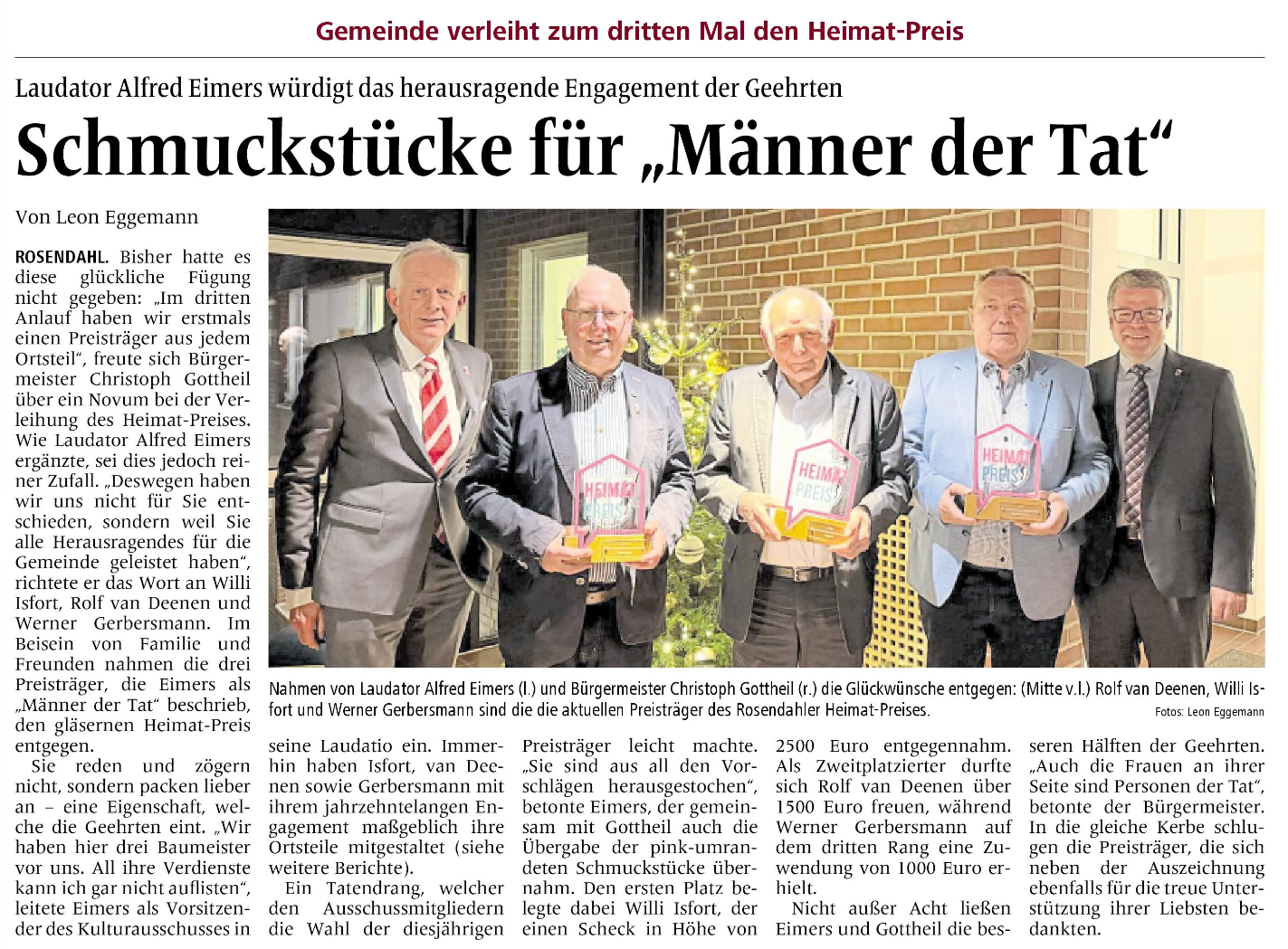 Am 11.12.2024 wurde der Heimat-Preis der Gemeinde Rosendahl zum zweiten Mal verliehen. Die Preisträger sind: