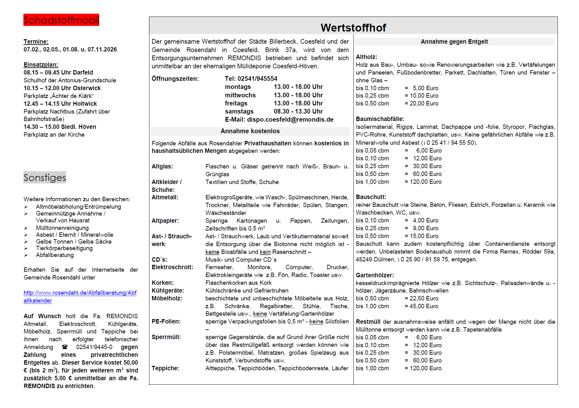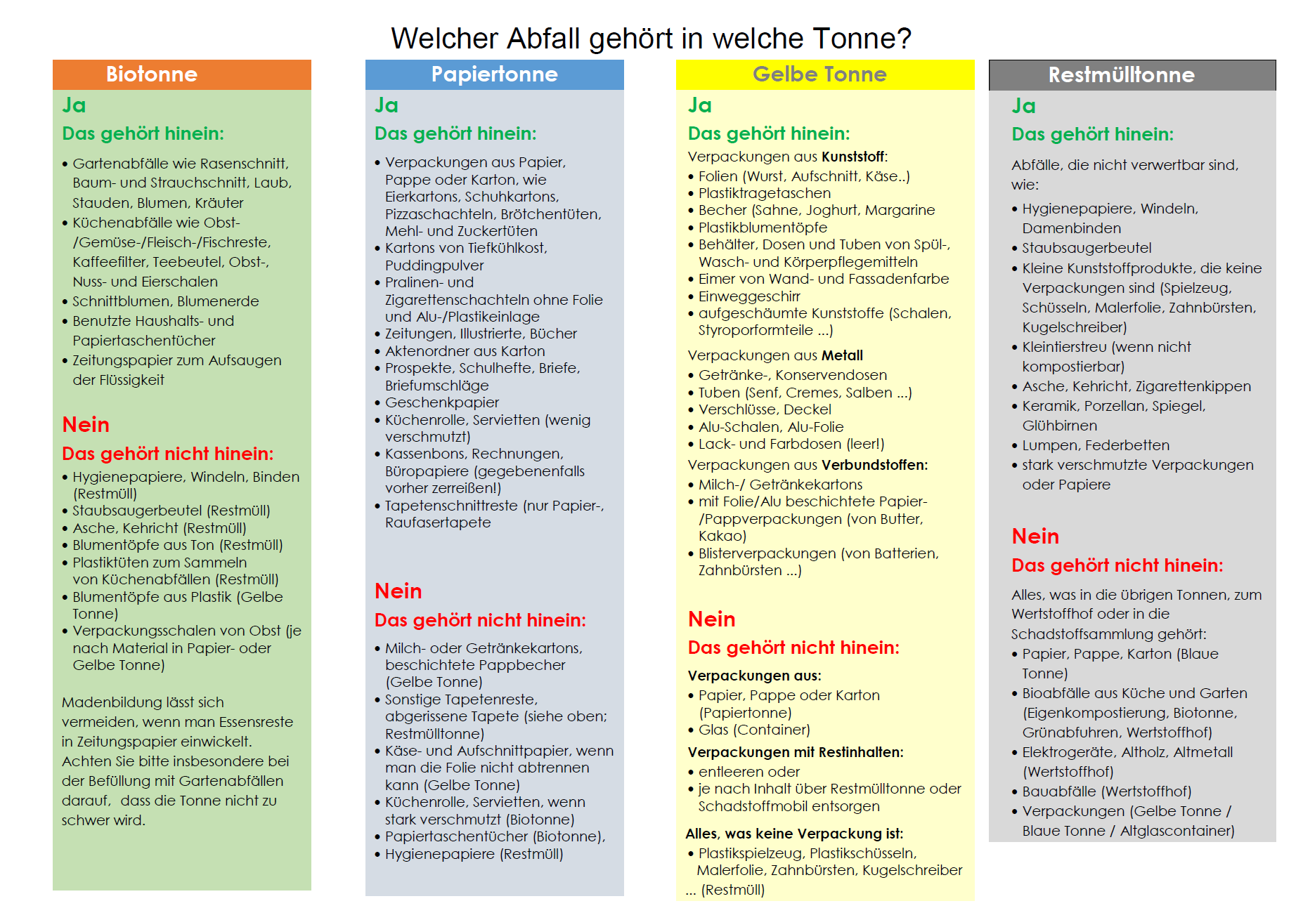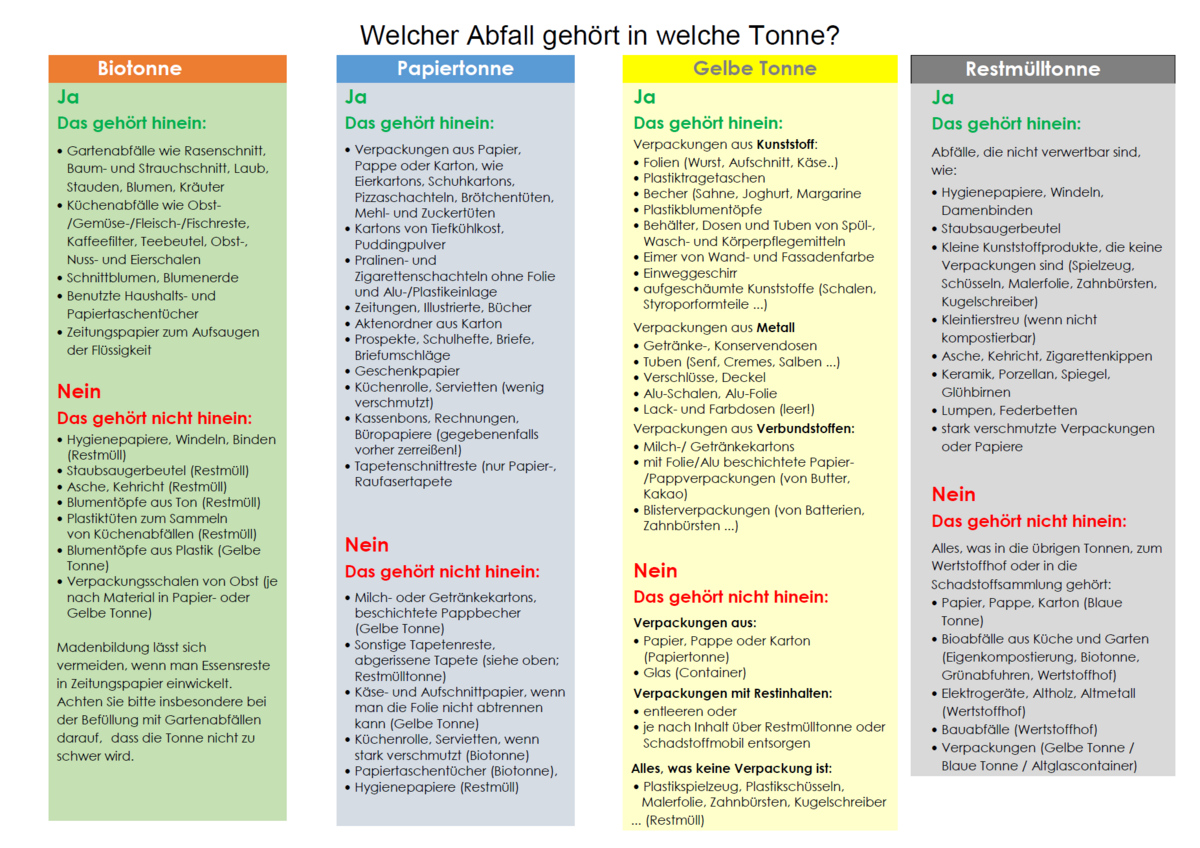 Auf dieser Seite finden Sie den aktuellen Abfuhrkalender, sowie Informationen über die richtige Mülltrennung und die Öffnungszeiten des Wertstoffhofes.