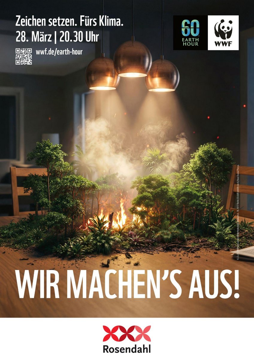 Am Samstag, den 28. März 2026, wird es weltweit für eine Stunde dunkler: Um 20:30 Uhr schalten Menschen, Städte und Unternehmen rund um den Globus für 60 Minuten das Licht aus. Die Earth Hour ist eine weltweite Aktion der Umweltstiftung WWF – und Rosendahl beteiligt sich daran.